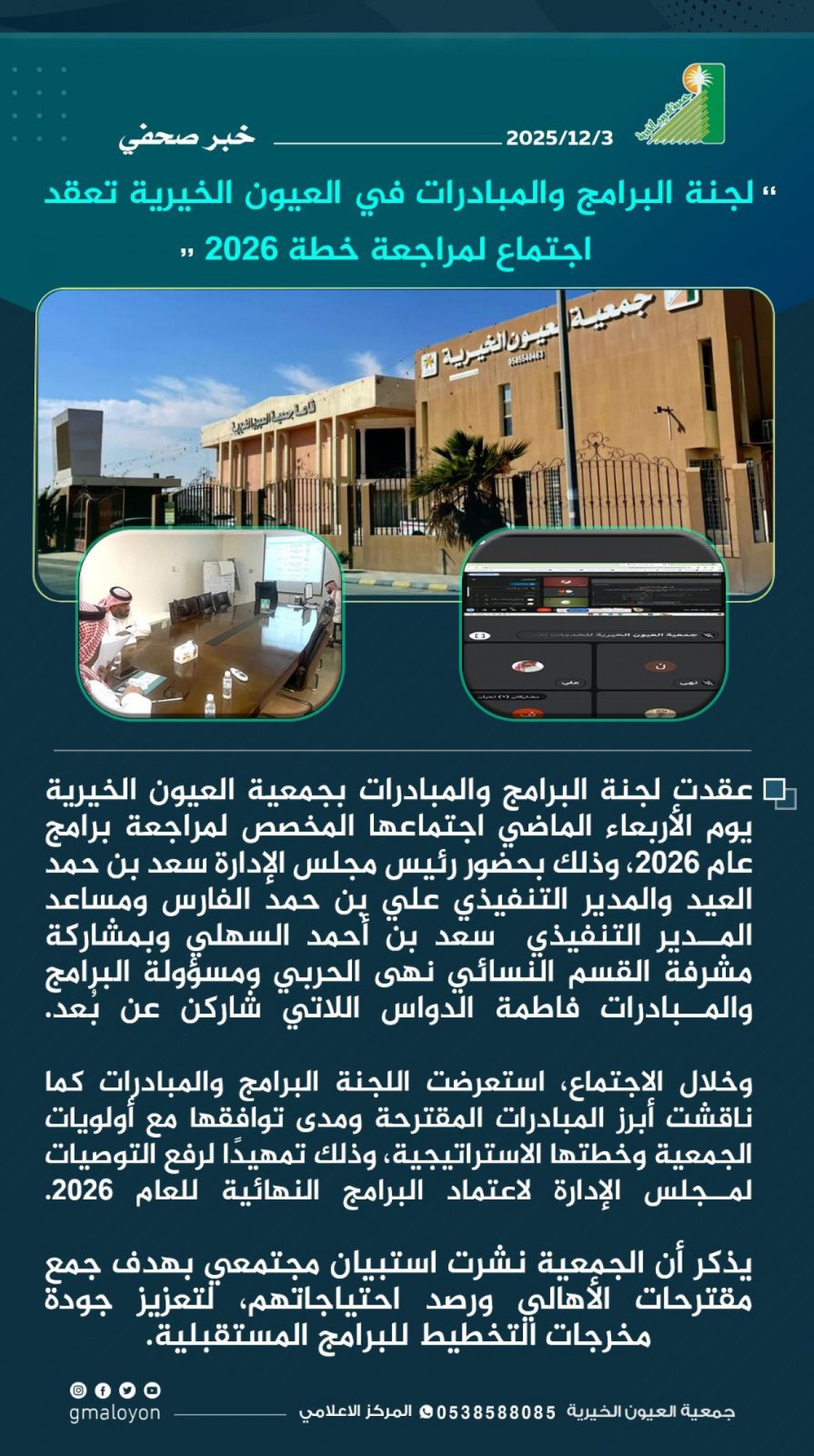 لقاء رئيس مجلس إدارة جمعية العيون الخيرية الاستاذ سعد بن حمد العيد صباح اليوم الأربعاء ٦ شوال في إذاعة نداء الإسلام للحديث عن جهود وبرامج الجمعية.
