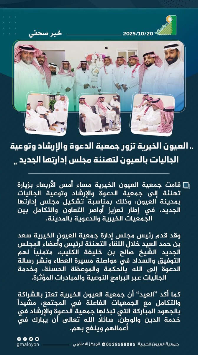 العيون الخيرية تزور جمعية الدعوة والإرشاد وتوعية الجاليات بالعيون لتهنئة مجلس إدارتها الجديد