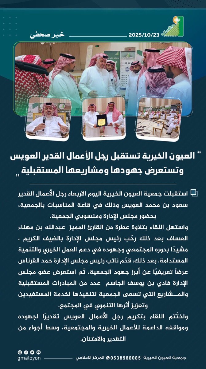 العيون الخيرية تستقبل رجل الأعمال القدير العويس وتستعرض جهودها ومشاريعها المستقبلية