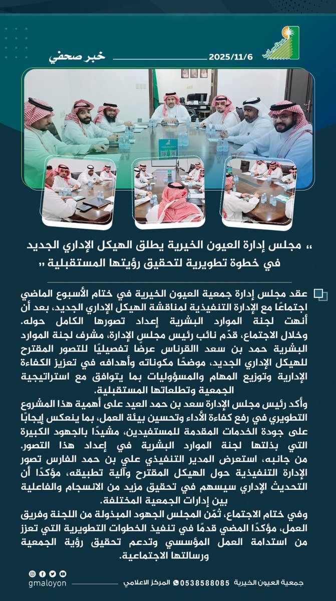 مجلس إدارة العيون الخيرية يعقد اجتماعه الدوري الـ 26 ويشكر مجلس الجمعيات بالشرقية على جهوده النوعية في تمكين الجمعيات من خلال تزويدهم بالكفاءات