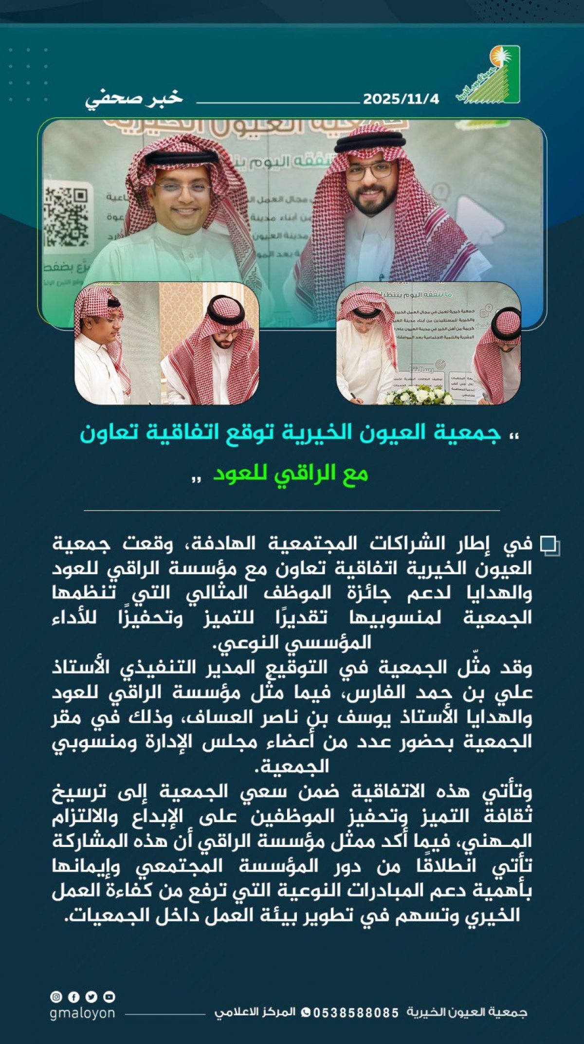 شكر وتقدير تتقدم جمعية العيون الخيرية بخالص الشكر والتقدير لمشروع المملكة العربية السعودية أضاحي على دعمهم الكريم لمستفيدي الجمعية بـ 210 ذبيحة من لحوم الهدي والأضاحي سائلين المولى أن يبارك في جهودهم ويوفقهم لكل خير